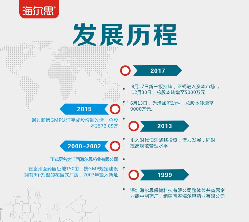 江西海爾思藥業(yè)股份有限公司座落于江西省宜春市袁州區(qū)醫(yī)藥工業(yè)園,源于1969年的贛中制藥廠。公司于2016年8月17日正式在新三板掛牌,股票代碼:838260。